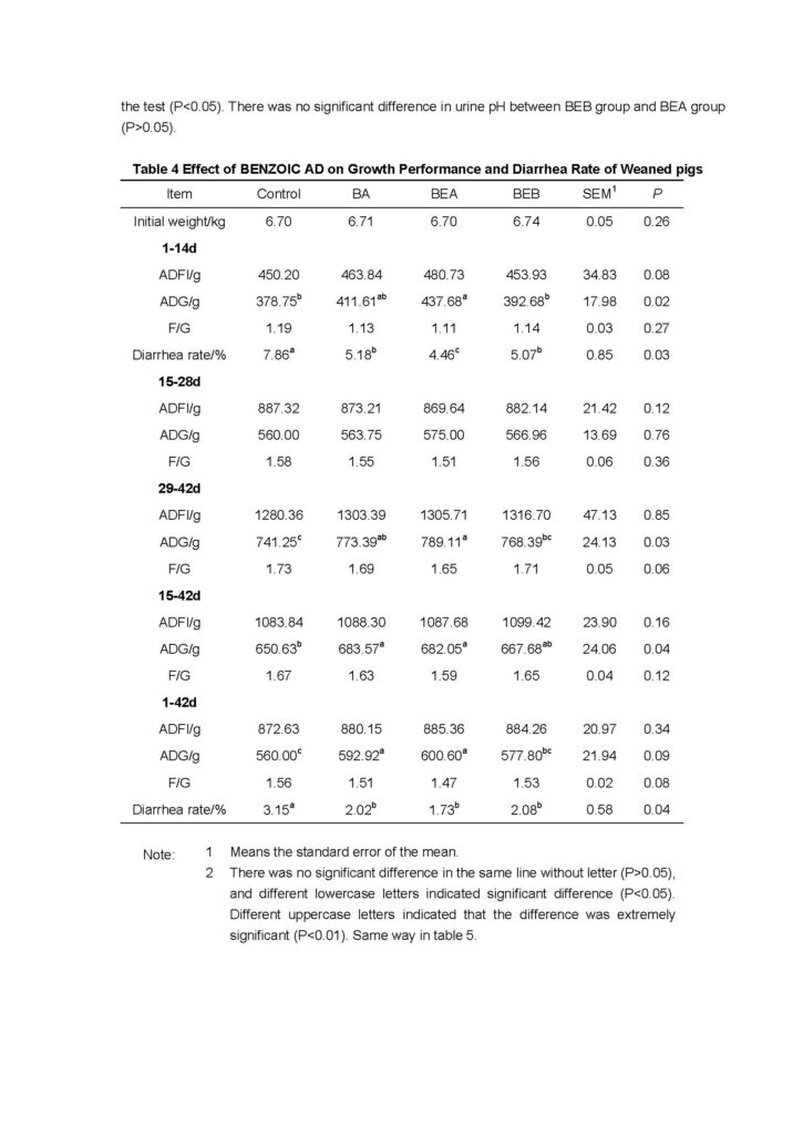 Effect of Benzoic Acid and BENZOIC AD in Feed on Growth Performance of Weaned Pigs