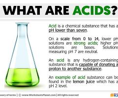 In chemistry, an acid is a substance that increases the concentration of hydrogen ions (𝐻+) when dissolved in water, typically has a sour taste, and a pH less than 7. Acids can also be defined more broadly as a proton (hydrogen ion) donor or an electron-pair acceptor.